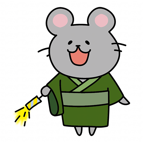 浴衣を着て手持ち花火をするネズミ