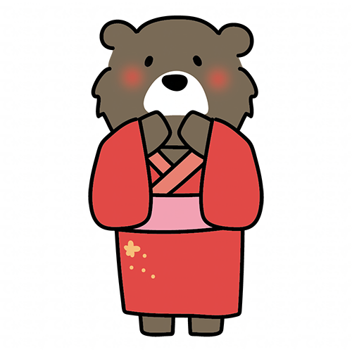 赤い浴衣を着て空を見上げるクマ