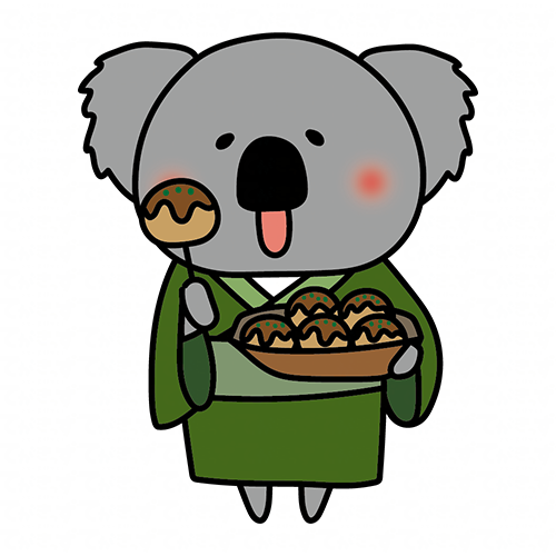 浴衣を着てたこ焼きを食べるコアラ
