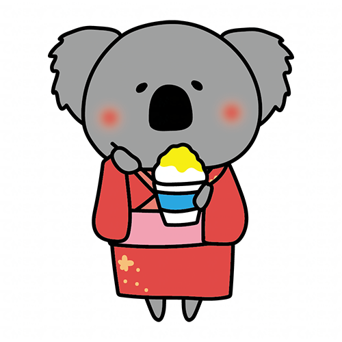 浴衣を着てかき氷を食べるコアラ