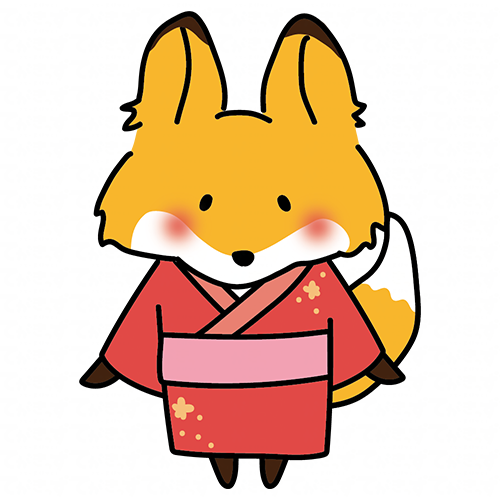 赤い浴衣を着ているキツネ