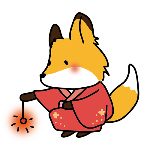 赤い浴衣を着て線香花火をするキツネ