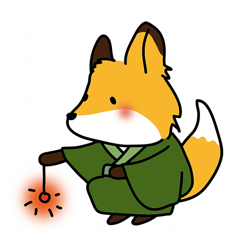 緑の浴衣を着て線香花火をするキツネ