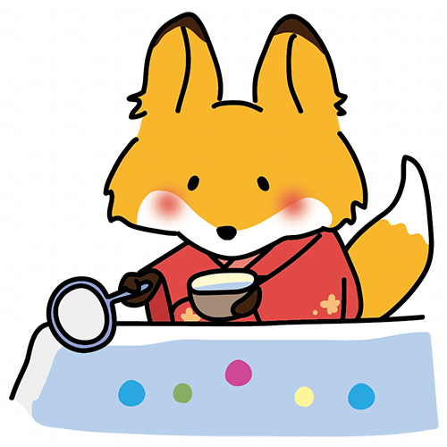 赤い浴衣を着てボールすくいをするキツネ