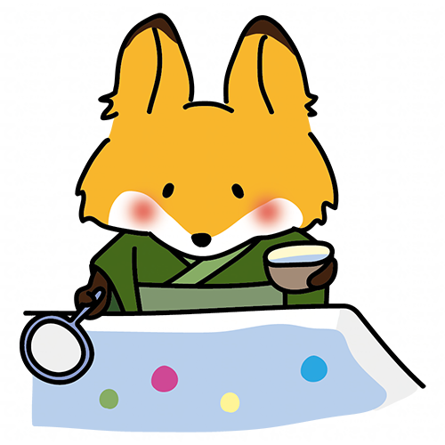 浴衣を着てたこ焼きを食べるキツネ