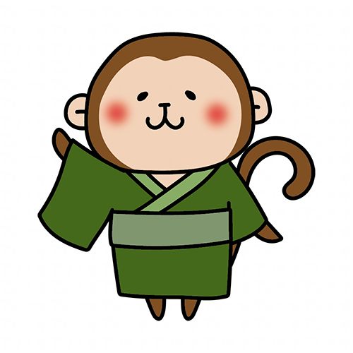 緑の浴衣を着ている猿