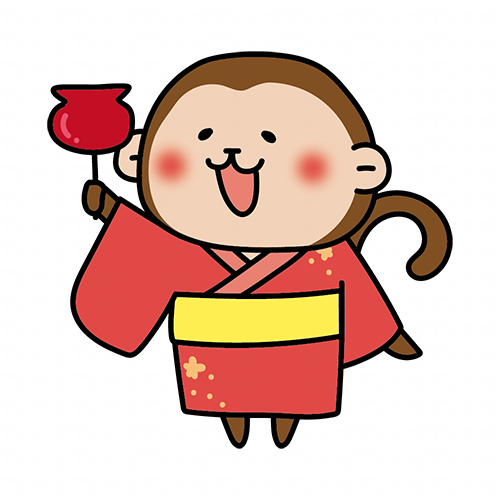 りんご飴を持っている浴衣を着た猿