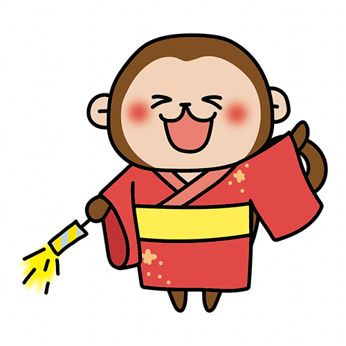 浴衣を着て手持ち花火をする猿