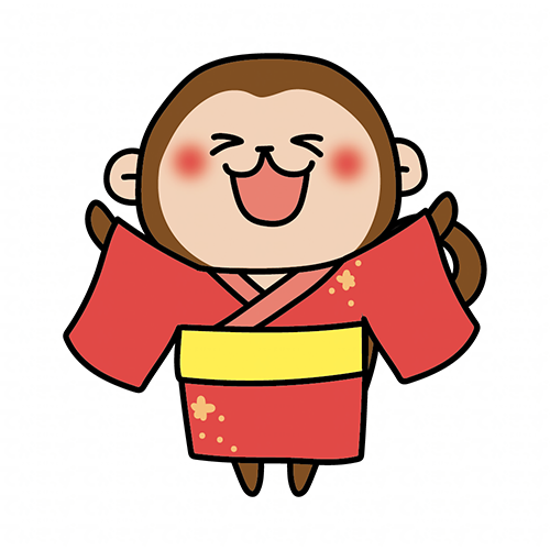 赤い浴衣を着て空を見上げる猿