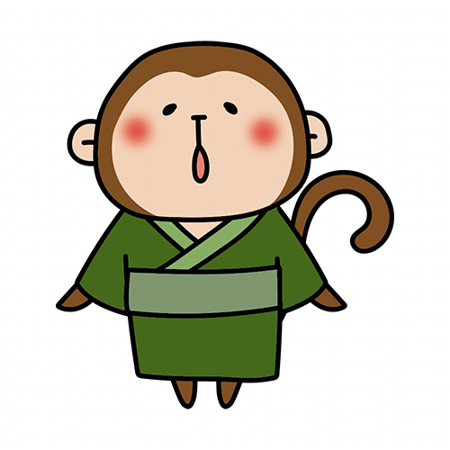 緑の浴衣を着て空を見上げる猿