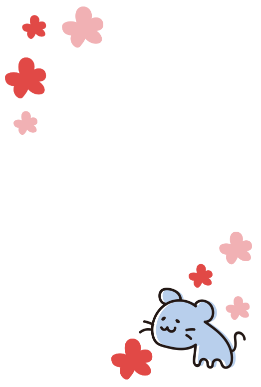 青いねずみと梅(はがき縦)