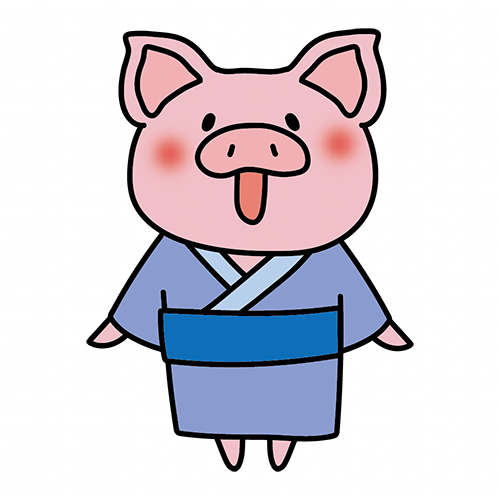 青い浴衣を着て空を見上げるぶた