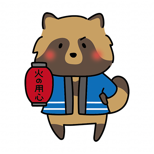 火の用心の提灯を持って声掛けをしているタヌキ