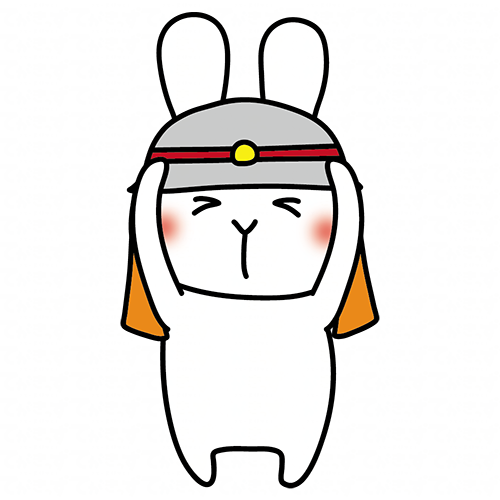 消防士の帽子を被る白いうさぎ