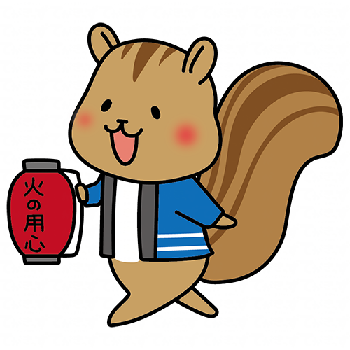 火の用心の提灯を持って声掛けをしているリス