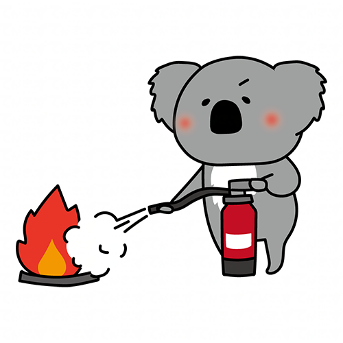 消火器を使って消火の練習をするコアラ
