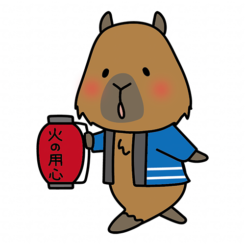 火の用心の提灯を持って声掛けをしているカピバラ