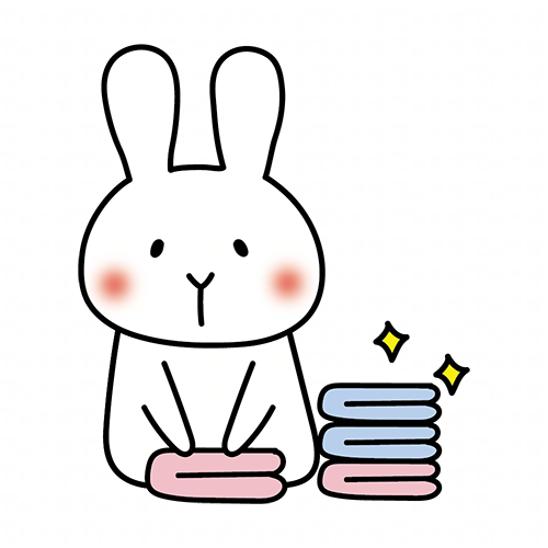 ごみ袋にゴミをまとめるお手伝いをする白いうさぎ