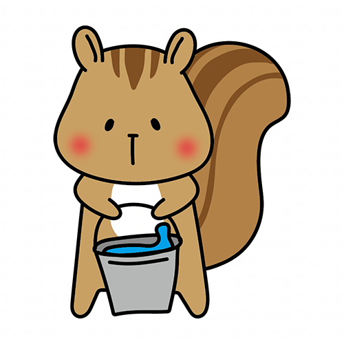 掃除用のバケツの水を運ぶリス