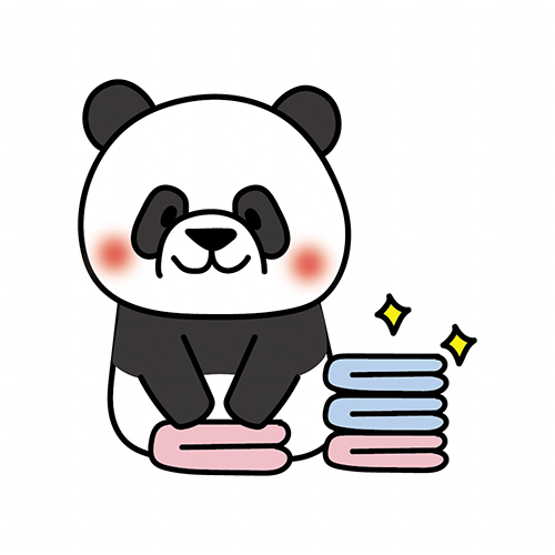 洗濯物をたたむお手伝いをするパンダ