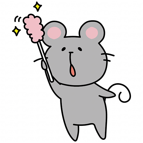 はたきでほこりを取るネズミ