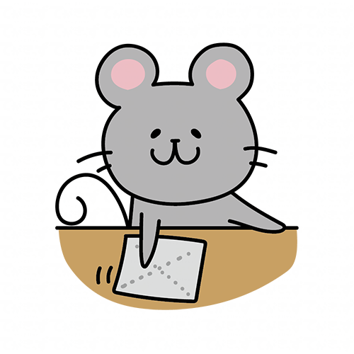 机を拭くお手伝いをするネズミ