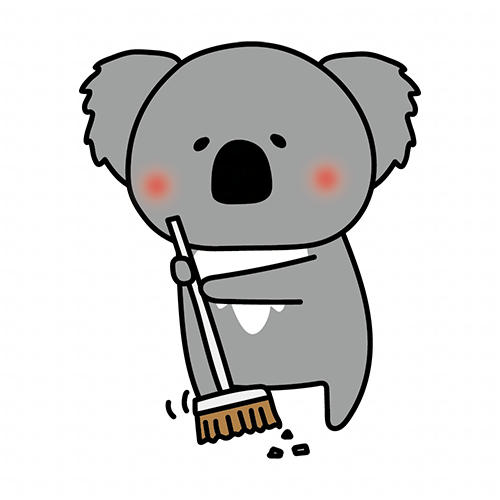 ほうきで掃除のお手伝いをするコアラ