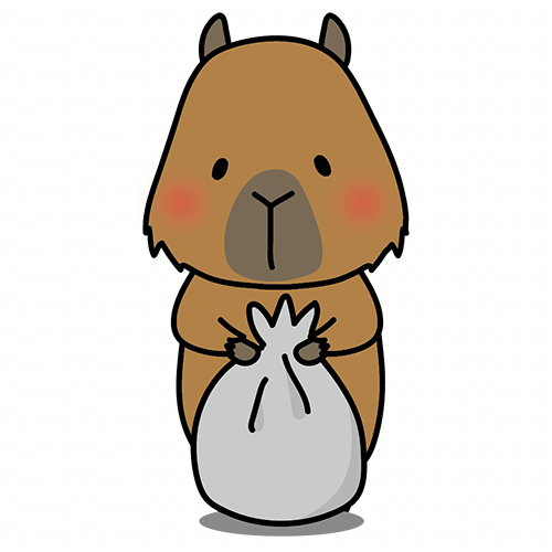ごみ袋にゴミをまとめるお手伝いをするカピバラ