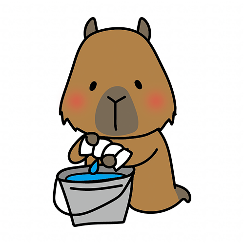 掃除用の雑巾を絞るカピバラ