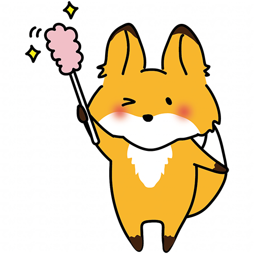 はたきでほこりを取るキツネ