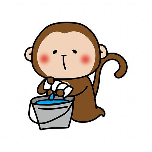 掃除用の雑巾を絞る猿