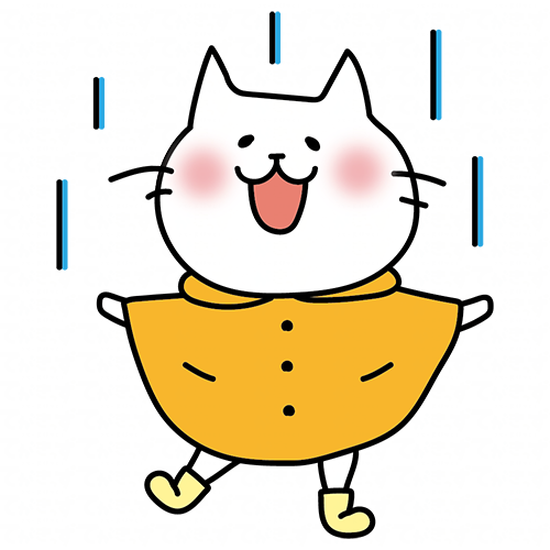 合羽を着て雨を喜ぶ白い猫