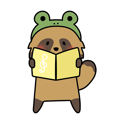 蛙の被り物をして歌をうたうタヌキ