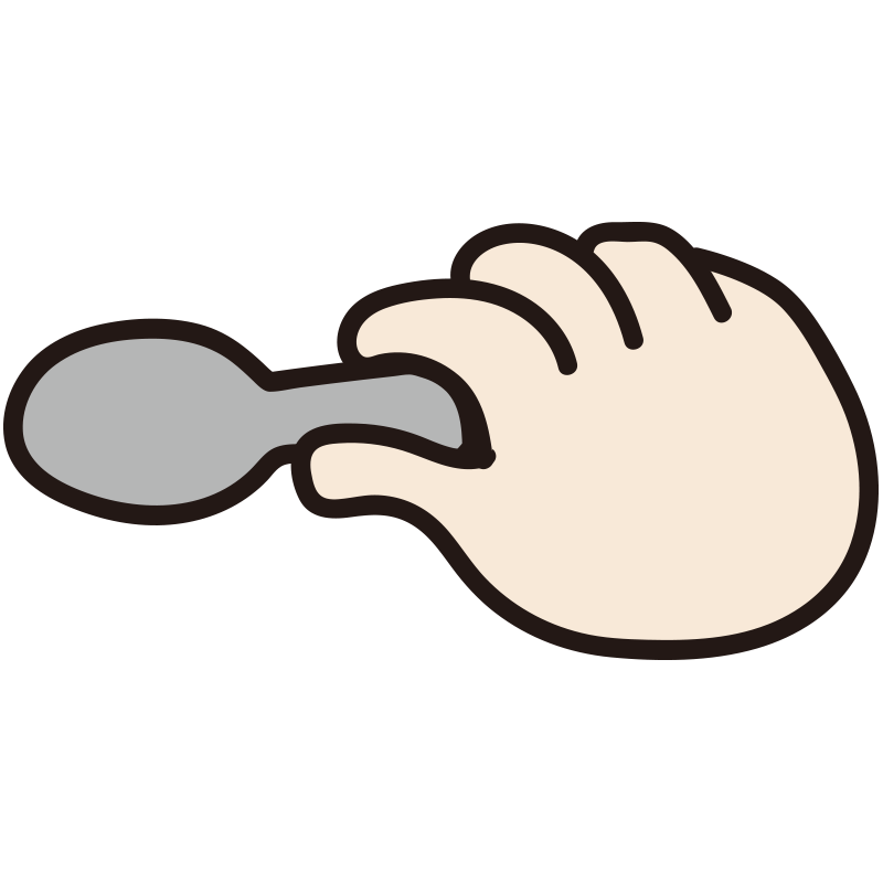 スプーンの持ち方のイラストです。手順を教えるときにも使えます。 スプーンを持った手5