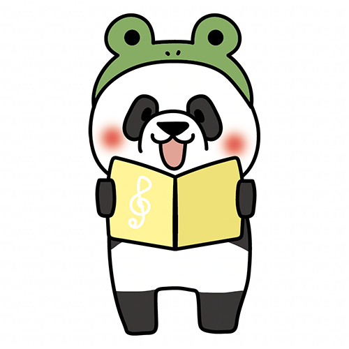 蛙の被り物をして歌をうたうパンダ