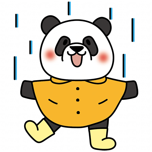 合羽を着て雨を喜ぶパンダ