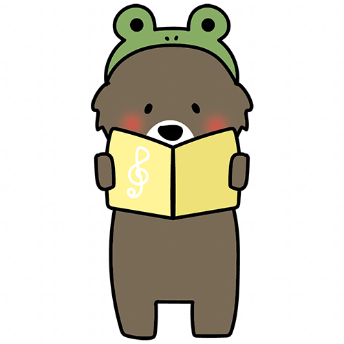 蛙の被り物をして歌をうたうクマ