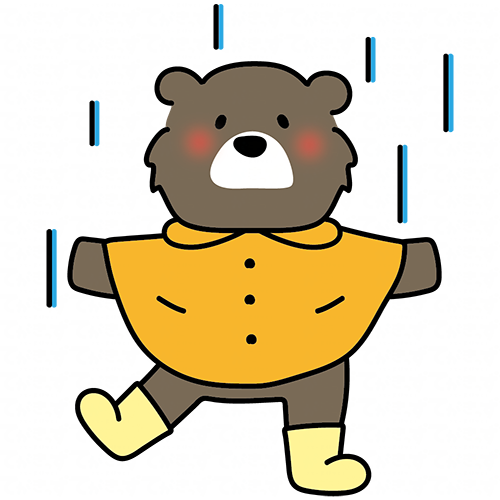 合羽を着て雨を喜ぶクマ