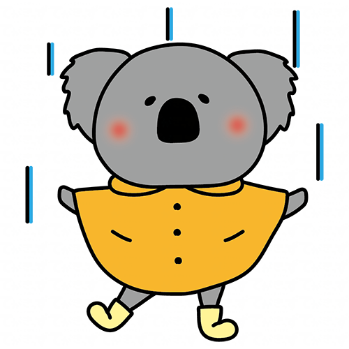 合羽を着て雨を喜ぶコアラ