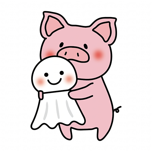 大きなてるてる坊主を持っているぶた