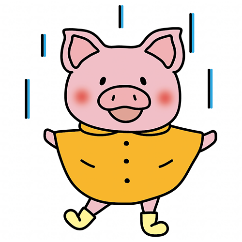 合羽を着て雨を喜ぶぶた