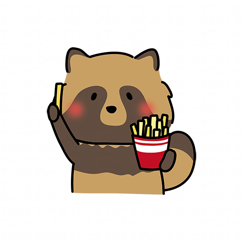 フライドポテトを食べるタヌキ