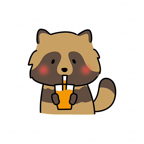 オレンジジュースを飲むタヌキ