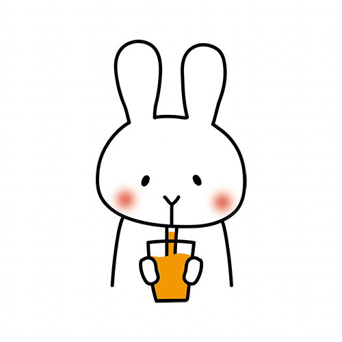 オレンジジュースを飲む白いうさぎ
