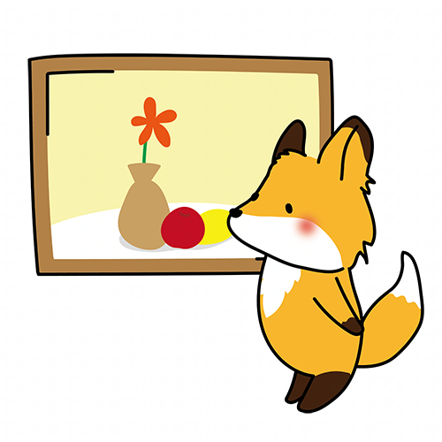 絵画鑑賞をするキツネ