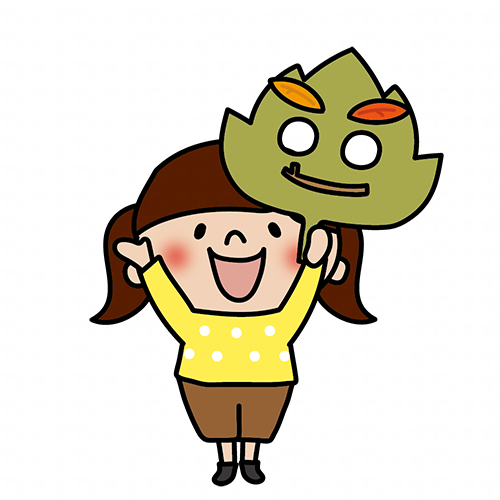 落ち葉のお面を持つ子供(女の子2)