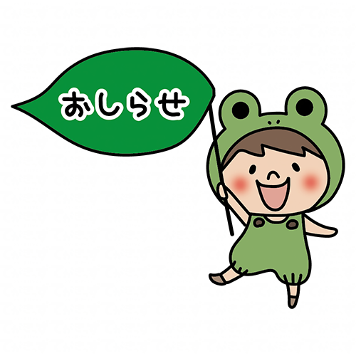 蛙の被り物をして大きなおしらせの葉っぱを持っている子供(男の子2)