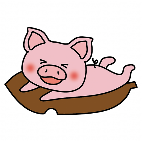大きな落ち葉に乗るぶた