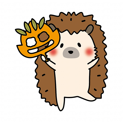 落ち葉のお面を持つハリネズミ