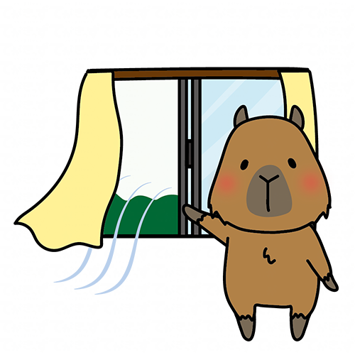 窓を開けて換気をするカピバラ